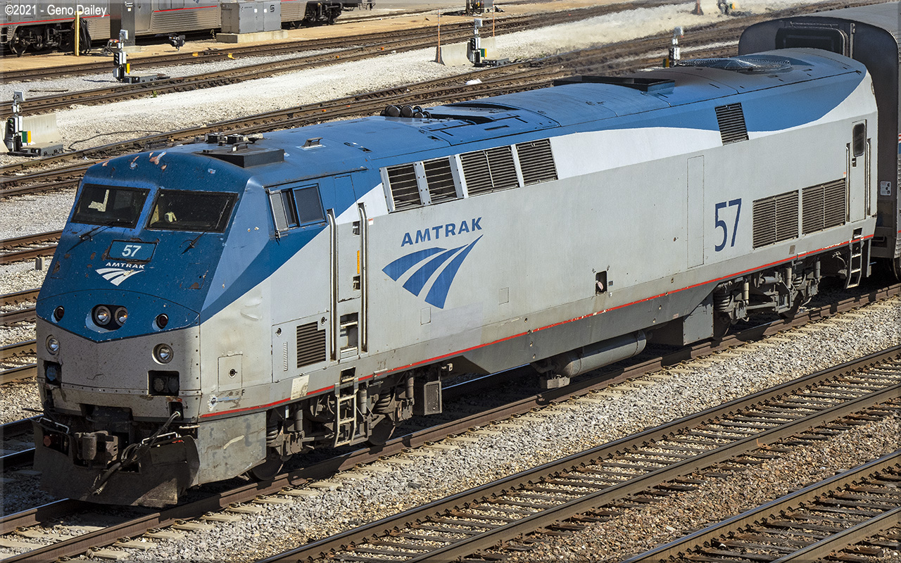Built by General Electric Transportation Systems in February 1997 and numbered 57. This series of locomotives, also known as the Genesis Series II locomotives, were an upgraded version of the P40DC. Historical information about this locomotive provided by www.amtrakbythenumbers.com. |