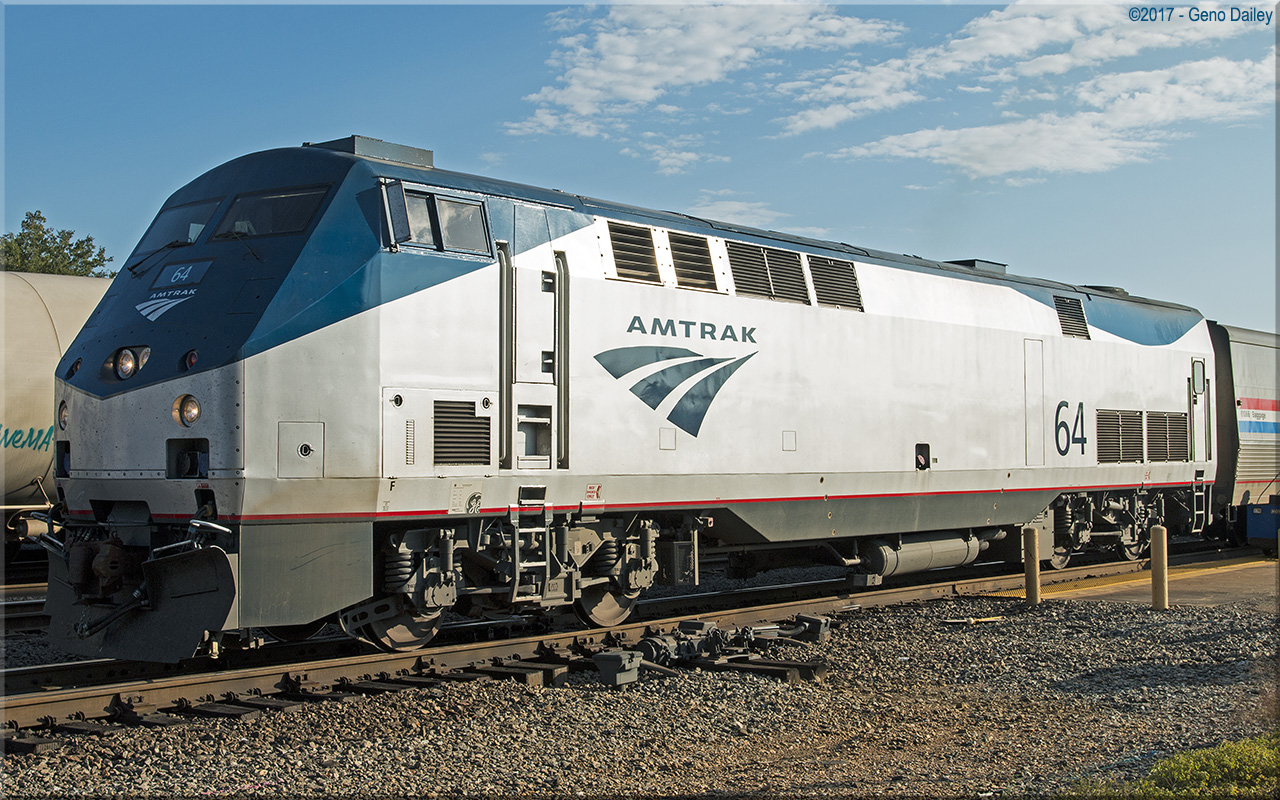 Built by General Electric Transportation Systems in March 1997 and numbered 64. This series of locomotives, also known as the Genesis Series II locomotives, were an upgraded version of the P40DC. Historical information about this locomotive provided by www.amtrakbythenumbers.com. |
