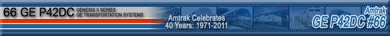 This is one of 4 P42's Amtrak repainted into prior paint schemes in celebration of its 40th Anniversary in 2011. #66 sports Amtrak's Phase II paint scheme from the mid/late 1970's to early 1980's. Historical information about this locomotive provided by www.amtrakbythenumbers.com.