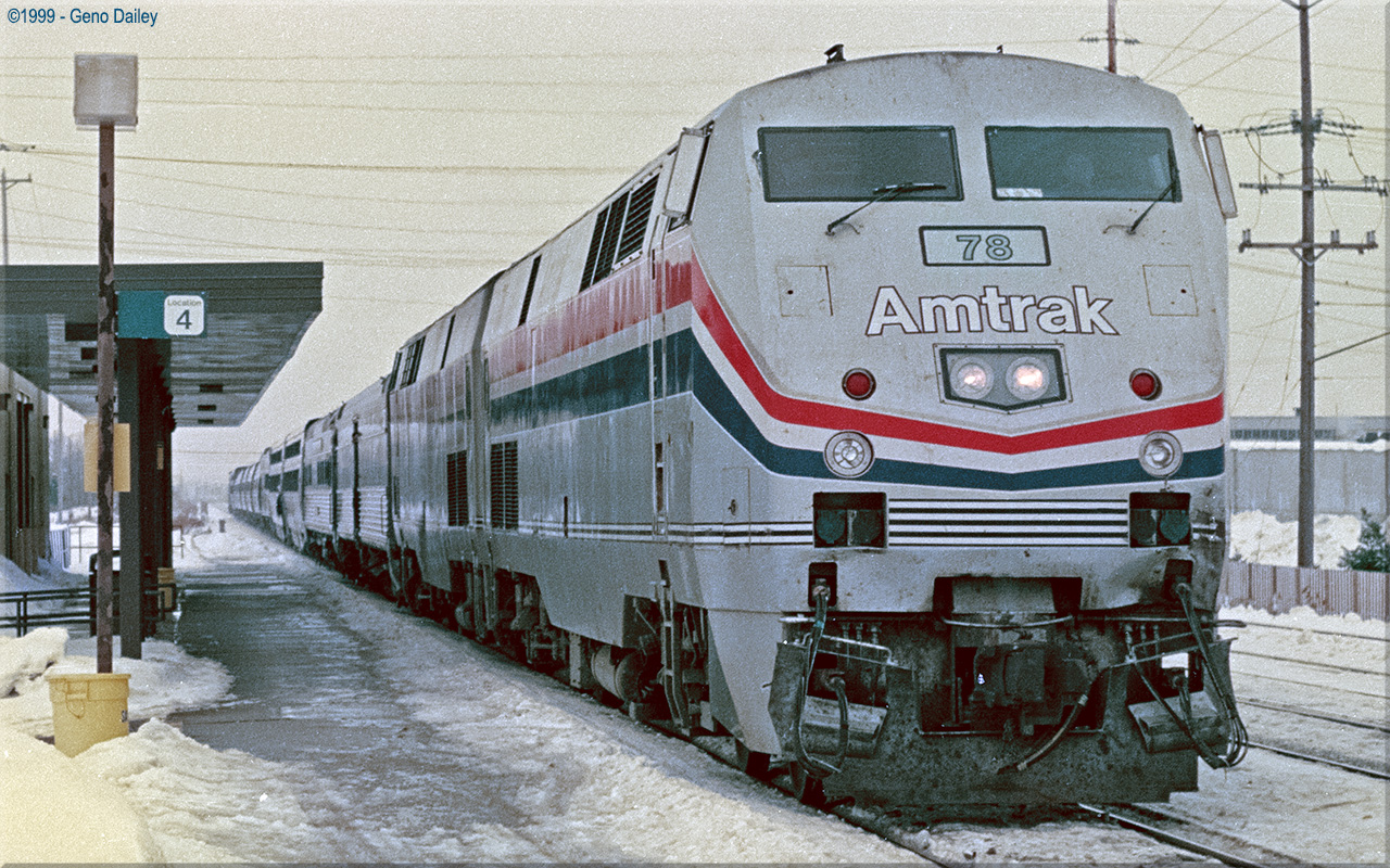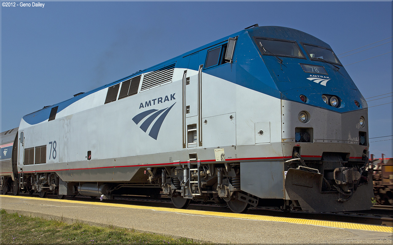 Built by General Electric Transportation Systems in April 1997 and numbered 78. This series of locomotives, also known as the Genesis Series II locomotives, were an upgraded version of the P40DC. Historical information about this locomotive provided by www.amtrakbythenumbers.com. |