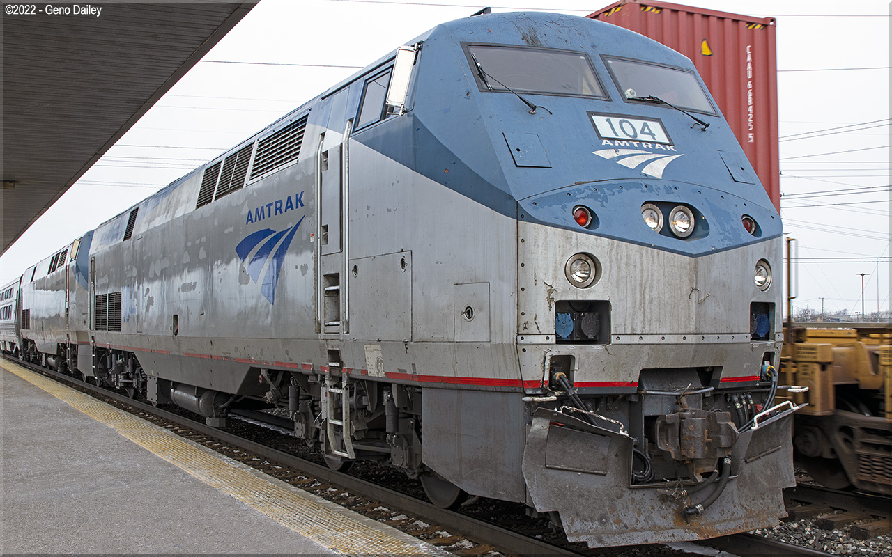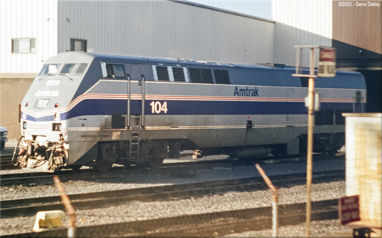 Built by General Electric Transportation Systems in July 1997 and numbered 104. This series of locomotives, also known as the Genesis Series II locomotives, were an upgraded version of the P40DC. Historical information about this locomotive provided by www.amtrakbythenumbers.com. |