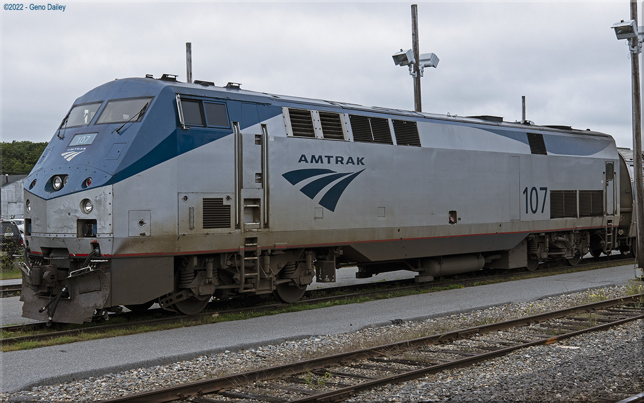 Built by General Electric Transportation Systems in August 1997 and numbered 107. This series of locomotives, also known as the Genesis Series II locomotives, were an upgraded version of the P40DC. Historical information about this locomotive provided by www.amtrakbythenumbers.com. |