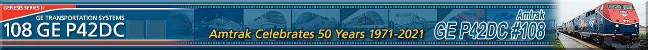 Built by General Electric Transportation Systems in August 1997 and numbered 108. This series of locomotives, also known as the Genesis Series II locomotives, were an upgraded version of the P40DC. In celebration of Amtrak's 50th Anniversary in 2021, this unit was painted in Phase VI, which is currently in use on many different types of Amtrak rolling stock but only on this one locomotive. Historical information about this locomotive provided by www.amtrakbythenumbers.com. |