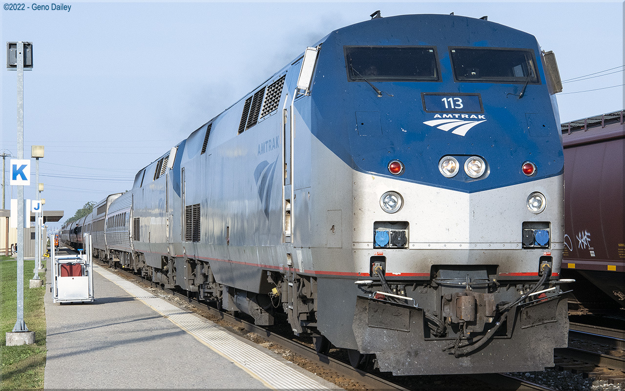 Built by General Electric Transportation Systems in August 1997 and numbered 113. This series of locomotives, also known as the Genesis Series II locomotives, were an upgraded version of the P40DC. Historical information about this locomotive provided by www.amtrakbythenumbers.com. |