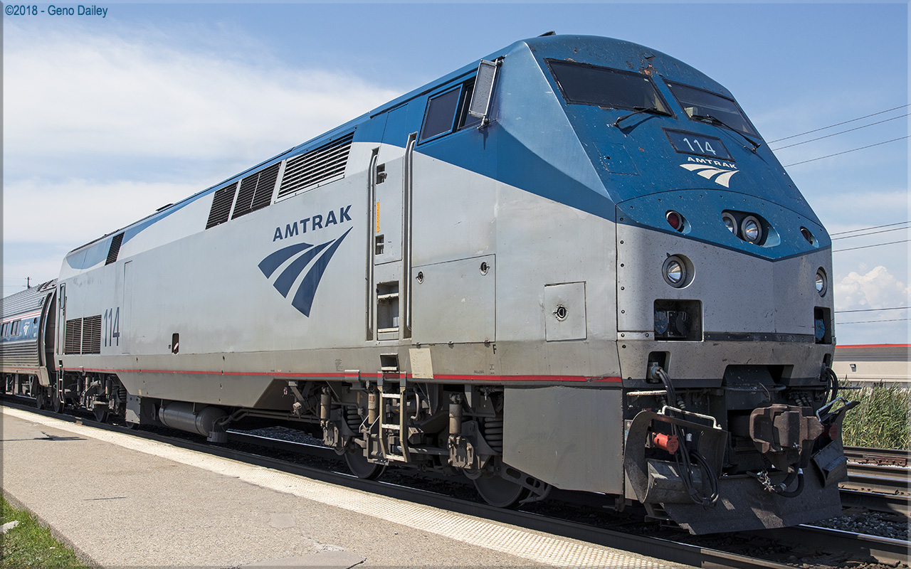 Built by General Electric Transportation Systems in September 1997 and numbered 114. This series of locomotives, also known as the Genesis Series II locomotives, were an upgraded version of the P40DC. Historical information about this locomotive provided by www.amtrakbythenumbers.com. |