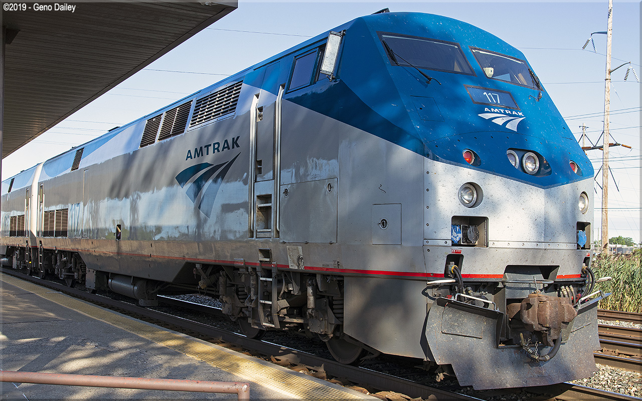 Built by General Electric Transportation Systems in September 1997 and numbered 117. This series of locomotives, also known as the Genesis Series II locomotives, were an upgraded version of the P40DC. Historical information about this locomotive provided by www.amtrakbythenumbers.com. |