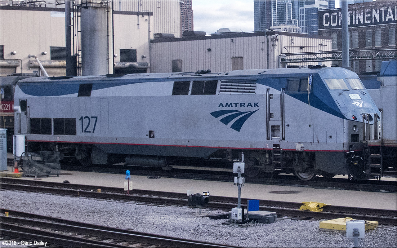Built by General Electric Transportation Systems in November 2000 and numbered 127. This series of locomotives, also known as the Genesis Series II locomotives, were an upgraded version of the P40DC. Historical information about this locomotive provided by www.amtrakbythenumbers.com. |