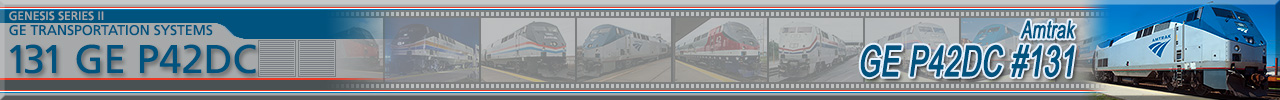 Built by General Electric Transportation Systems in December 2000 and numbered 131. This series of locomotives, also known as the Genesis Series II locomotives, were an upgraded version of the P40DC. Historical information about this locomotive provided by www.amtrakbythenumbers.com. |