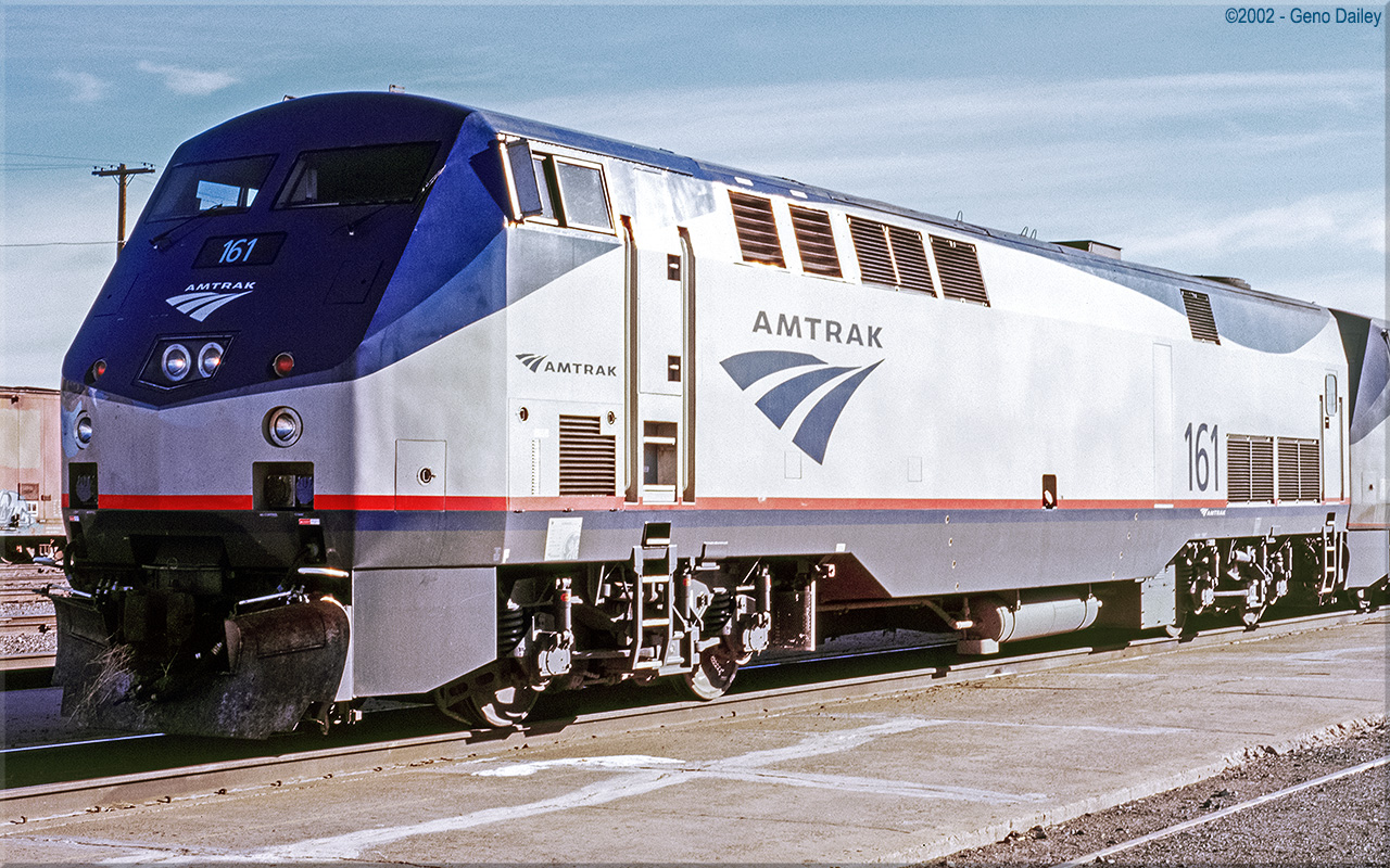 Built by General Electric Transportation Systems in May 2001 and numbered 161. This series of locomotives, also known as the Genesis Series II locomotives, were an upgraded version of the P40DC. Historical information about this locomotive provided by www.amtrakbythenumbers.com. |