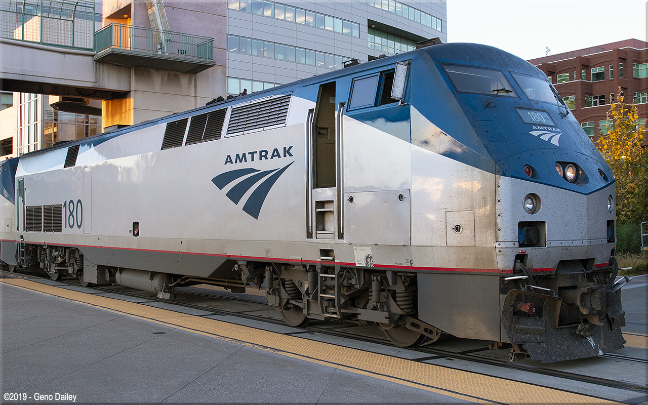 Built by General Electric Transportation Systems in June 2001 and numbered 180. This series of locomotives, also known as the Genesis Series II locomotives, were an upgraded version of the P40DC. Historical information about this locomotive provided by www.amtrakbythenumbers.com. |