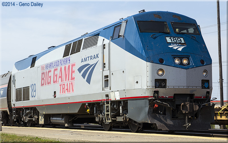 This unit was selected to wear a special paint scheme advertising The Heartland Flyer's Big Game Train. Historical information about this locomotive provided by www.amtrakbythenumbers.com.