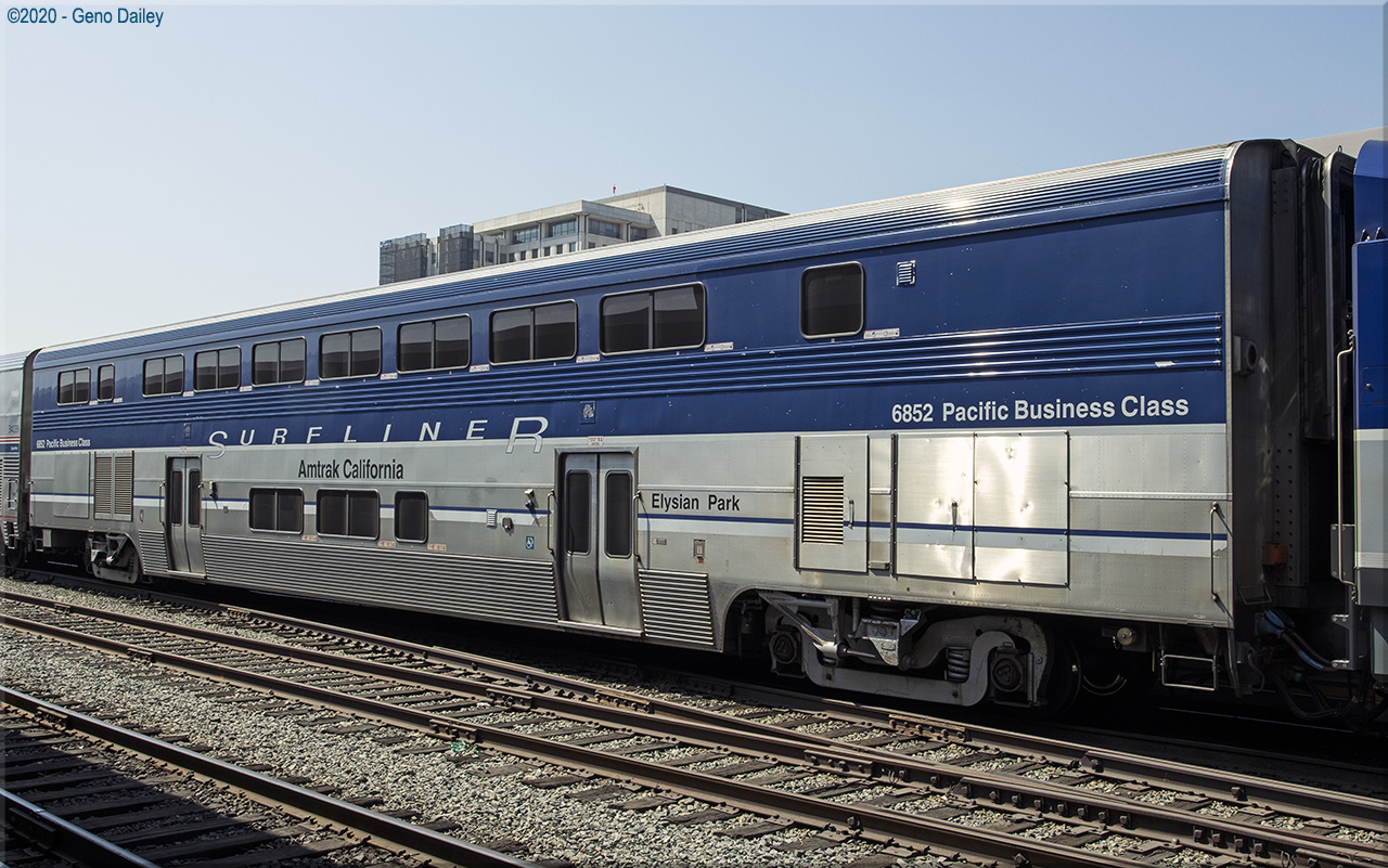 Built in 2002 as a business class car featuring seating and tables, operating on Pacific Surfliner trains between Los Angeles & San Diego along with Surfliner trains operating from Los Angeles north to as far as San Luis Obispo. These cars when first built didn't have names but would begin to have names starting in 2008 as they were cycled through Beech Grove for maintenance with this car later being named "Elysian Park". Historical information about this car provided by www.amtrakbythenumbers.com. |