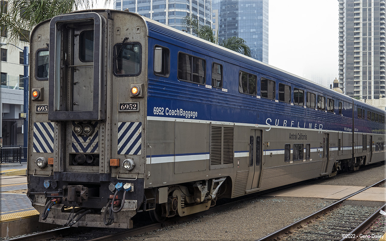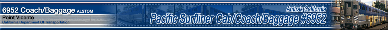 Built in August 2001 as a cab/coach/baggage car operating on Pacific Surfliner trains between Los Angeles & San Diego along with Surfliner trains operating from Los Angeles north to as far as San Luis Obispo. These cars when first built didn't have names but would begin to have names starting in 2008 as they were cycled through Beech Grove for maintenance with this car later being named "Point Vincente". Historical information about this car provided by www.amtrakbythenumbers.com. |