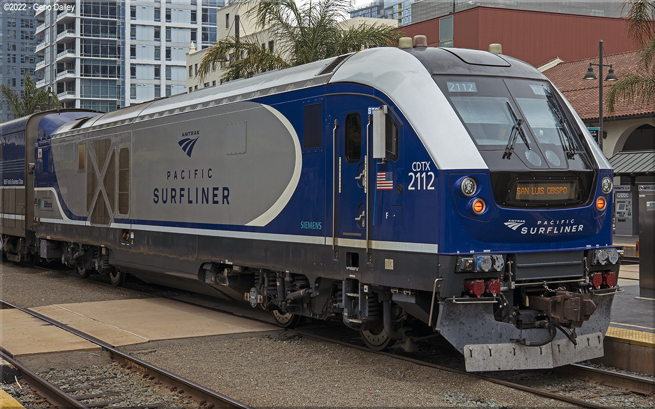 Built by Siemens Mobility in August 2018 and numbered CDTX 2112. These locomotives are owned by the State of California and are used on Amtrak California's Pacific Surfliner Route. Historical information about this locomotive provided by www.amtrakbythenumbers.com. |