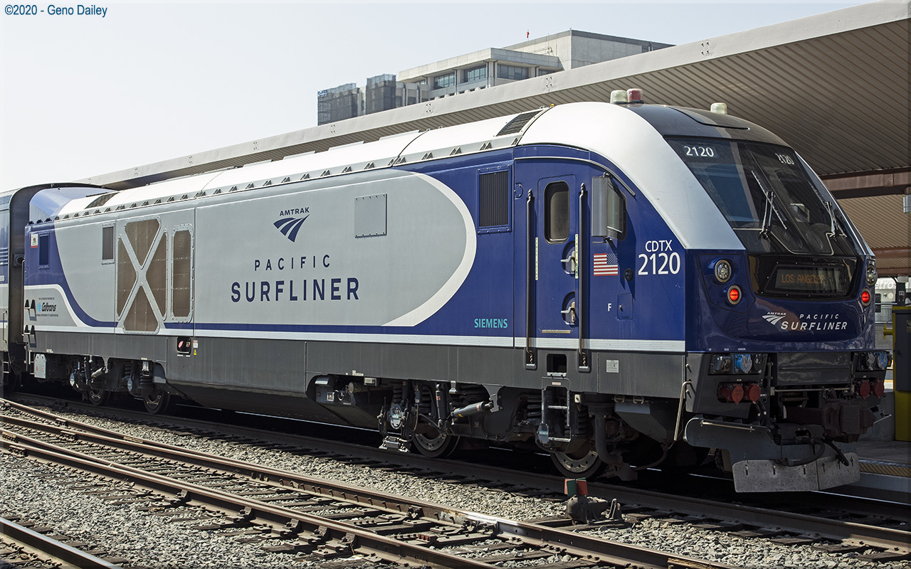 Built by Siemens Mobility in October 2018 and numbered CDTX 2120. These locomotives are owned by the State of California and are used on Amtrak California's Pacific Surfliner Route. Historical information about this locomotive provided by www.amtrakbythenumbers.com. |