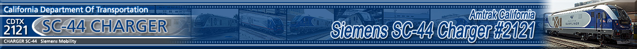 Built by Siemens Mobility in December 2018 and numbered CDTX 2121. These locomotives are owned by the State of California and are used on Amtrak California's Pacific Surfliner Route. Historical information about this locomotive provided by www.amtrakbythenumbers.com. |