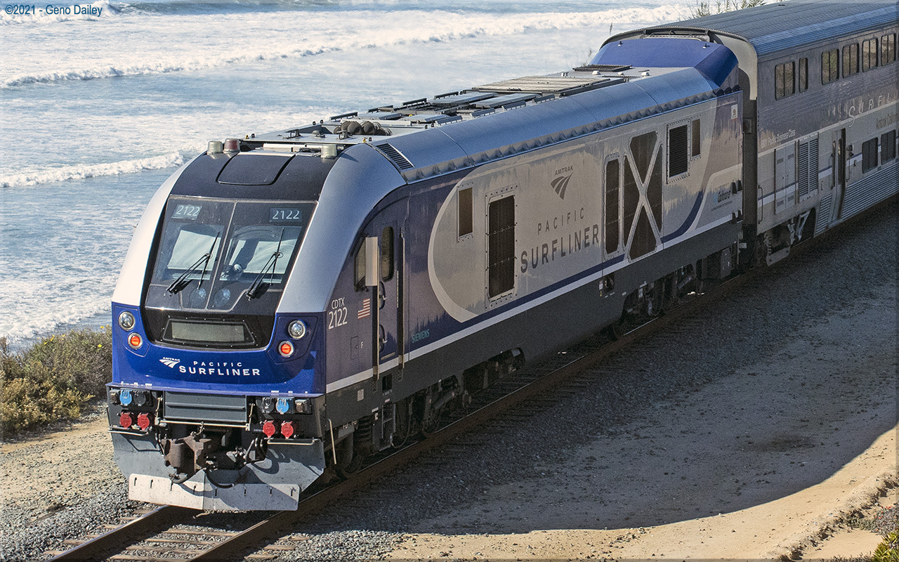 Built by Siemens Mobility in May 2019 and numbered CDTX 2122. These locomotives are owned by the State of California and are used on Amtrak California's Pacific Surfliner Route. Historical information about this locomotive provided by www.amtrakbythenumbers.com. |