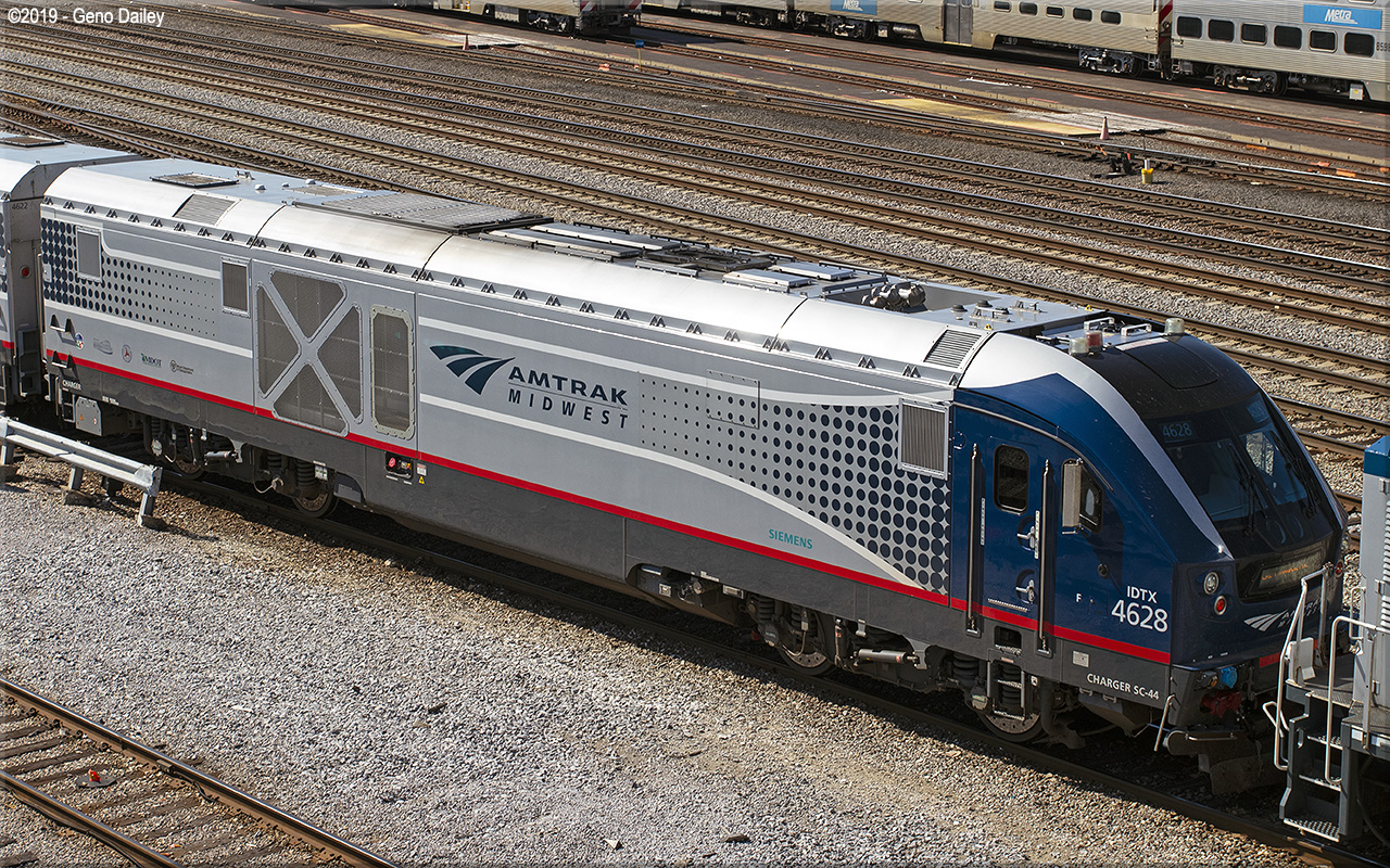 Built by Siemens Mobility in September 2017 and numbered IDTX 4628. These locomotives are owned by a consortium of midwestern states and are used on state-sponsored corridor routes operating out of Chicago. They are carrying Illinois Department of Transporation reporting marks (IDTX) since the state of Illinois lead the consortium of states including Illinois, Michigan, Missouri, and Wisconsin that ordered these locomotives. Historical information about this locomotive provided by www.amtrakbythenumbers.com. |