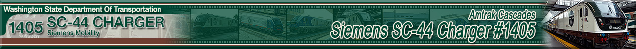 Built by Siemens Mobility in June 2017 and numbered WDTX 1405. These locomotives are owned by the State of Washington and are used on Washington & Oregon state-sponsored Cascades Service operating out of Seattle. Historical information about this locomotive provided by www.amtrakbythenumbers.com. |