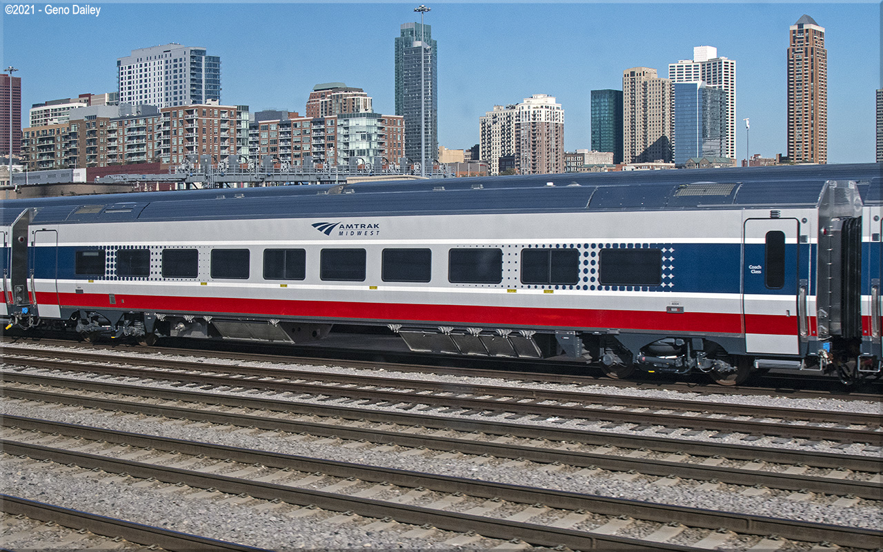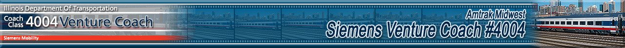 Built by Siemens Mobility in August 2020 and numbered 4004. These coaches were built for use on state-sponsored corridor routes operating out of Chicago to other destinations in Illinois, as well as trains to Michigan, Missouri & Wisconsin. Historical information about this locomotive provided by www.amtrakbythenumbers.com. |