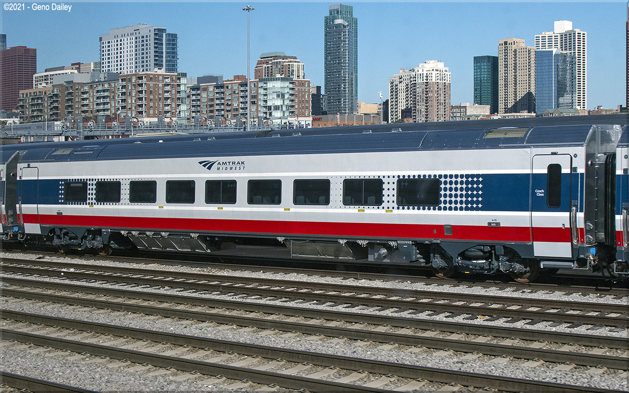 Built by Siemens Mobility in November 2020 and numbered 4018. These coaches were built for use on state-sponsored corridor routes operating out of Chicago to other destinations in Illinois, as well as trains to Michigan, Missouri & Wisconsin. Historical information about this locomotive provided by www.amtrakbythenumbers.com. |
