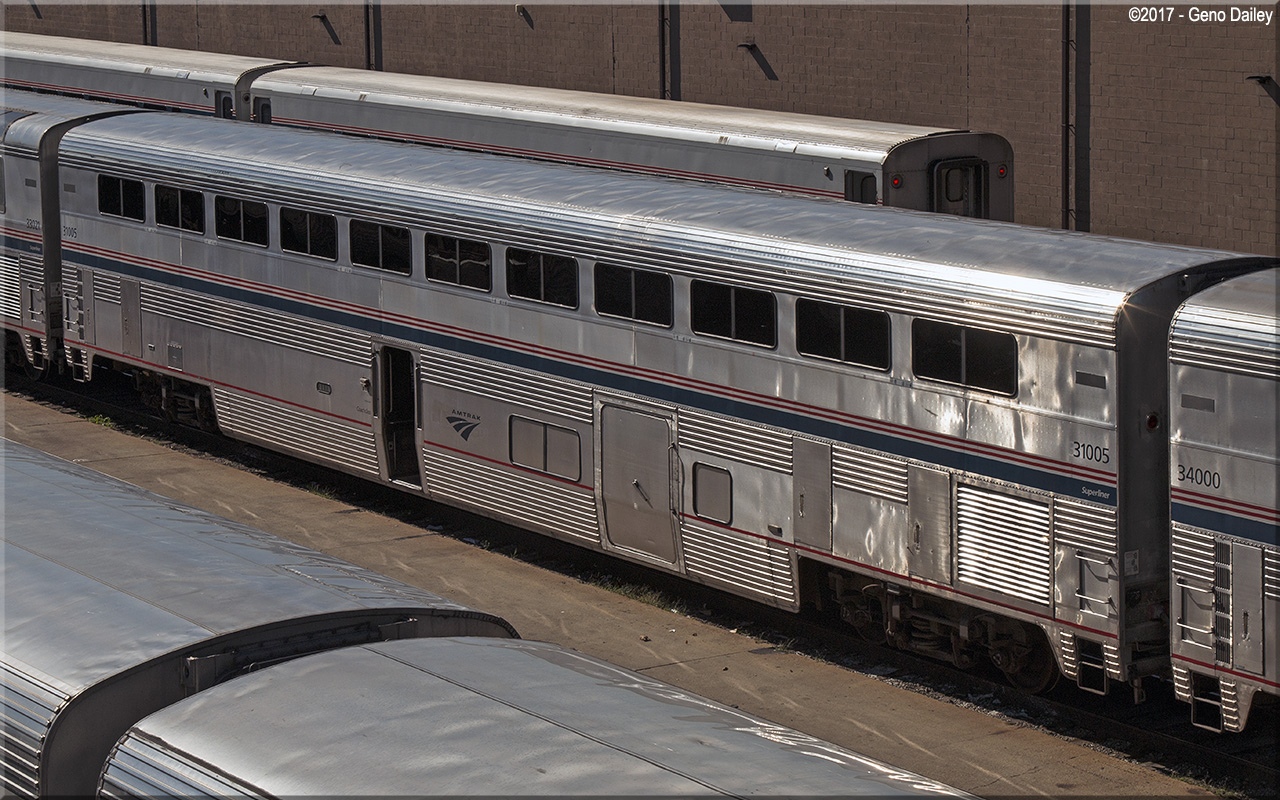 Built in 1980 as a 62 seat coach with a baggage room occupying part of the lower level of the car. Historical information about this car provided by www.amtrakbythenumbers.com. |