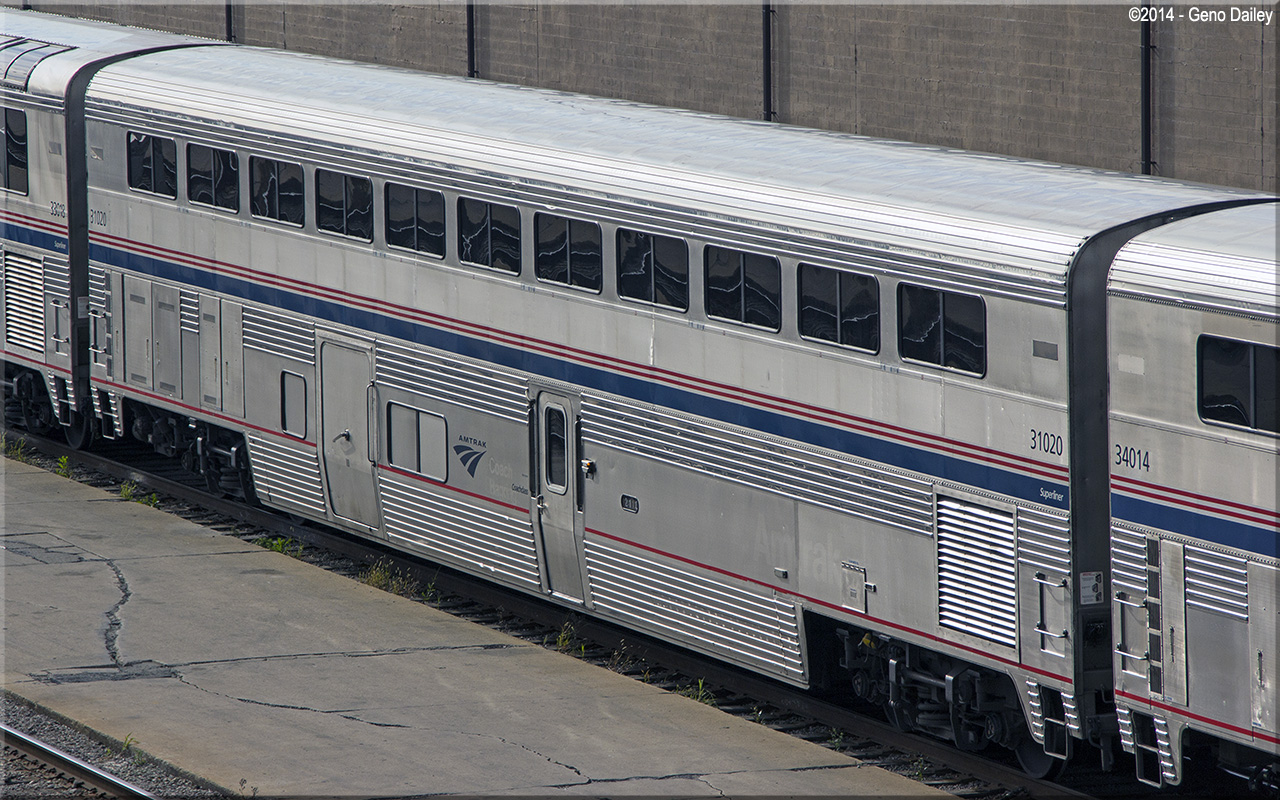 Built in 1980 as a 62 seat coach with a baggage room occupying part of the lower level of the car. Converted into a smoker coach with an enclosed, ventilated smoking room built inside the baggage room in January 1997 and renumbered 31520. Converted back into a standard coach baggage car in August 2005 and renumbered back to 31020 after Amtrak eliminated smoking onboard most trains. Historical information about this car provided by www.amtrakbythenumbers.com. |