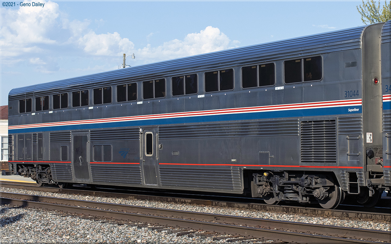 Built in 1980 as a 62 seat coach with a baggage room occupying part of the lower level of the car. Historical information about this car provided by www.amtrakbythenumbers.com. |