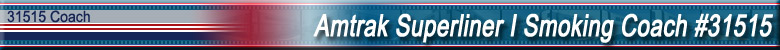 This car was originally built as Coach/Baggage #31015 then converted to Smoking Coach #31515. The car has since been renumbered back to #31015 and converted back to a Coach/Baggage as Amtrak discontinued smoking on most of its routes.