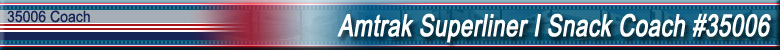 Car was originally built as Coach #34015 and converted to Snack Coach #35006. The lower level of the car features a full snack bar.