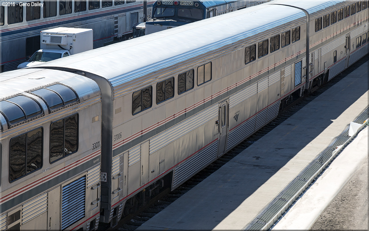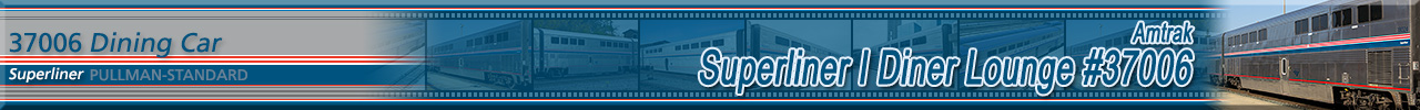 Built in 1980 as a dining car and numbered 38025. Converted to a diner-lounge configuration to allow the car to be used as a dining car and lounge car in the same car. Diner-Lounge conversion was completed in December 2007 and the car renumbered 37006. Historical information about this car provided by www.amtrakbythenumbers.com. |