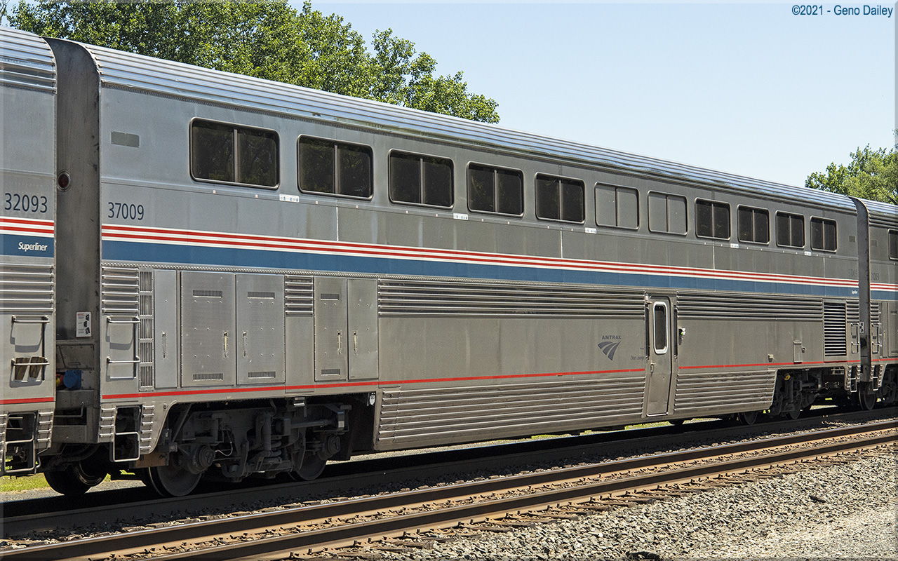 Built in 1979 as a dining car and numbered 38005. Converted to a diner-lounge configuration to allow the car to be used as a dining car and lounge car in the same car. Diner-Lounge conversion was completed in February 2008 and the car renumbered 37009. Historical information about this car provided by www.amtrakbythenumbers.com. |