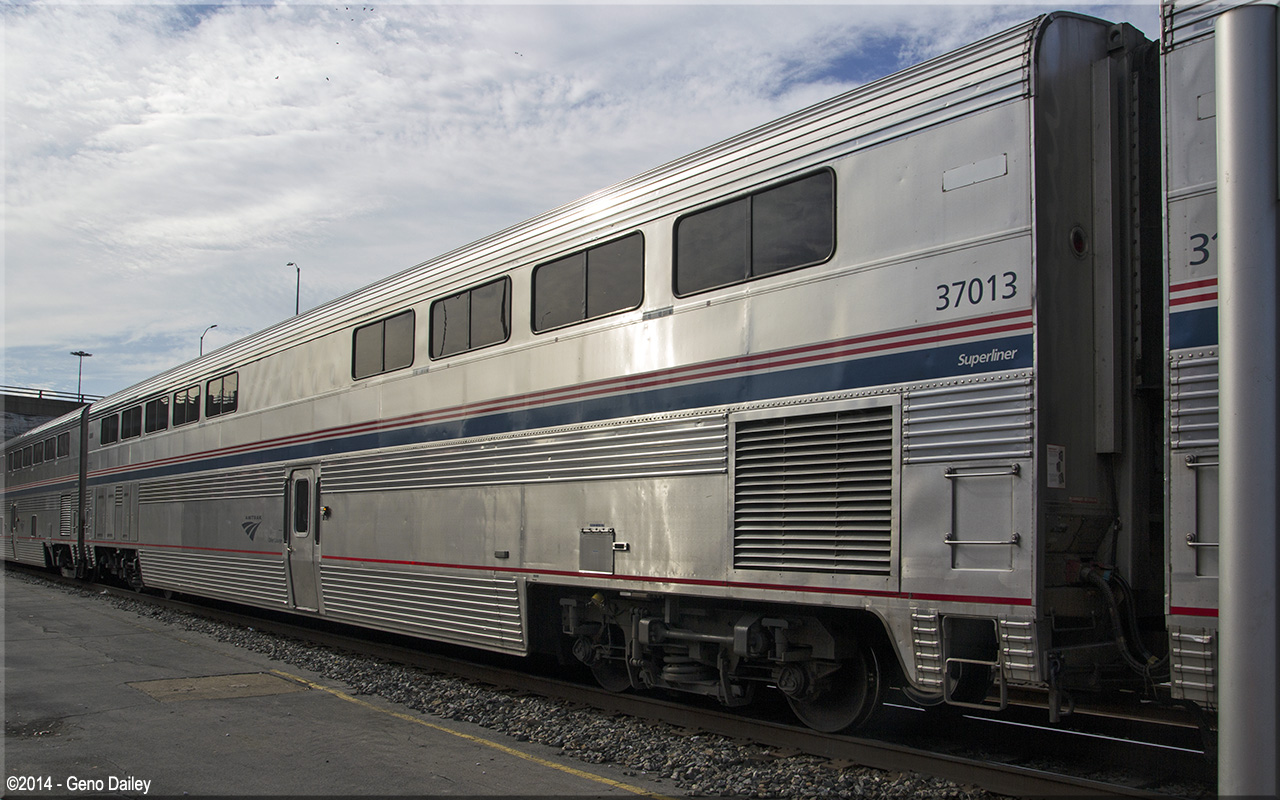 Built in 1981 as a dining car. Converted to a diner-lounge configuration to allow the car to be used as a dining car and lounge car in the same car. Diner-Lounge conversion was completed in May 2008 and the car renumbered 37013. Historical information about this car provided by www.amtrakbythenumbers.com. |