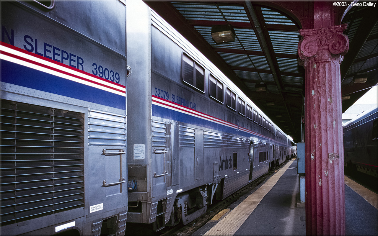 Built in 1994 as a sleeping car. Superliner II Sleepers were originally named after states, though once relettered in Phase VI, the names were removed from the exteriors of the cars. Historical information about this car provided by www.amtrakbythenumbers.com. |