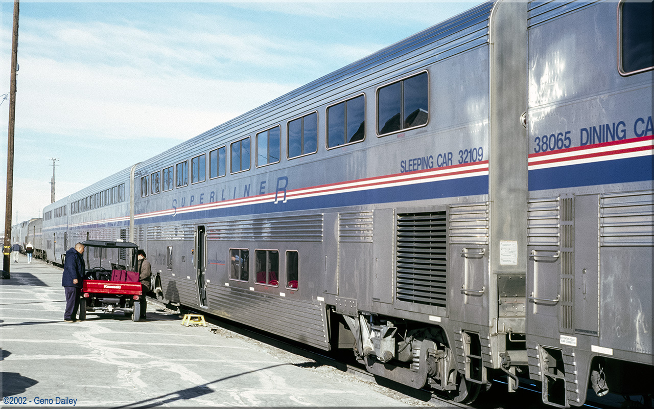Built in 1994 as a sleeping car. Superliner II Sleepers were originally named after states, though once relettered in Phase VI, the names were removed from the exteriors of the cars. Historical information about this car provided by www.amtrakbythenumbers.com. |