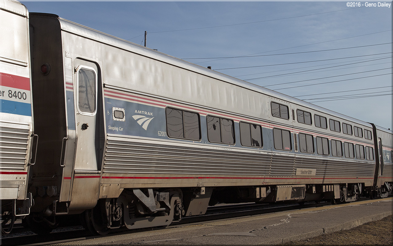 Built by Morrison-Knudsen in September 1995 as a single-level sleeping car originally named "Atlantic View" and numbered 62001. Historical information about this car provided by www.amtrakbythenumbers.com. |