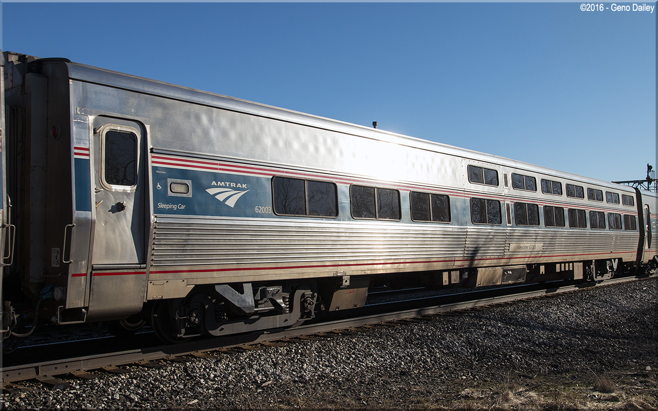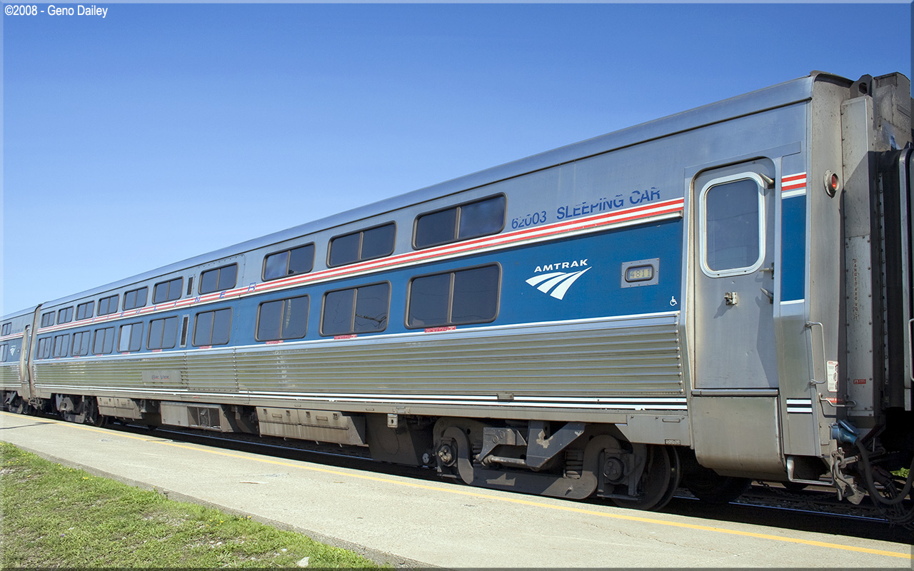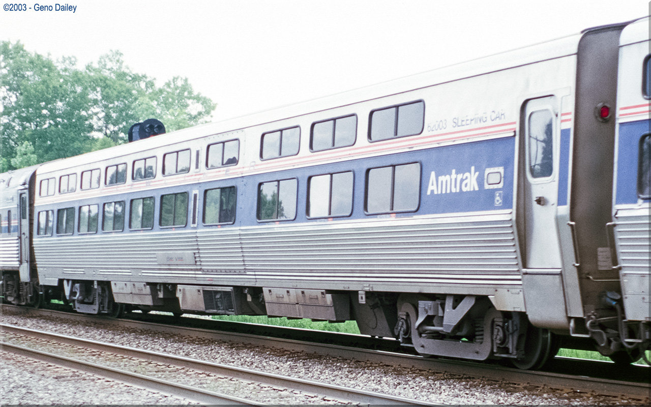 Built by Morrison-Knudsen in October 1995 as a single-level sleeping car originally named "Bay View" and numbered 62003. Historical information about this car provided by www.amtrakbythenumbers.com. |