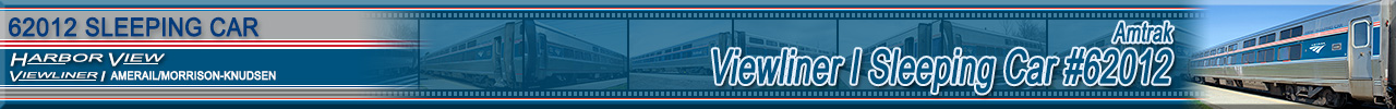 Built by Amerail In March 1996 as a single-level sleeping car originally named "Harbor View" and numbered 62012. As seen in the above photo, in Phase VI paint, there is no name on the car any longer, being replaced simply with the word "Viewliner" and its car number. Historical information about this car provided by www.amtrakbythenumbers.com. |