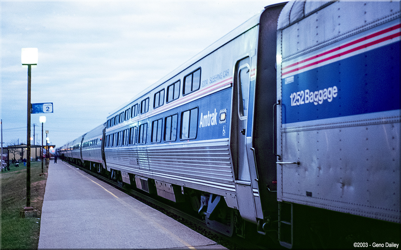 Built by Amerail in March 1996 as a single-level sleeping car originally named "Imerial View" and numbered 62014. Historical information about this car provided by www.amtrakbythenumbers.com. |