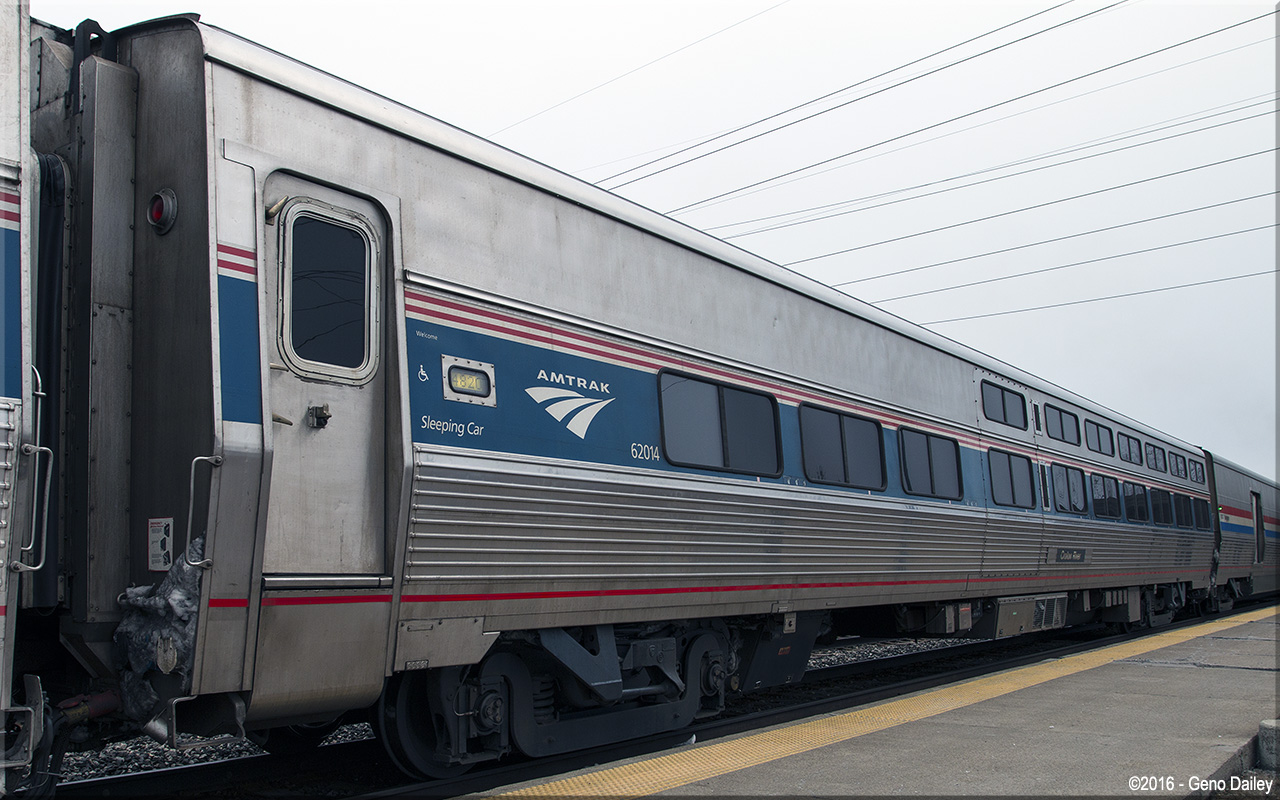 Built by Amerail in March 1996 as a single-level sleeping car originally named "Imperial View" and numbered 62014. As seen in the above photo, Amtrak's newer logo and the updated blue color were added to the existing red and white stripes with the car still retaining its name. Historical information about this car provided by www.amtrakbythenumbers.com. |