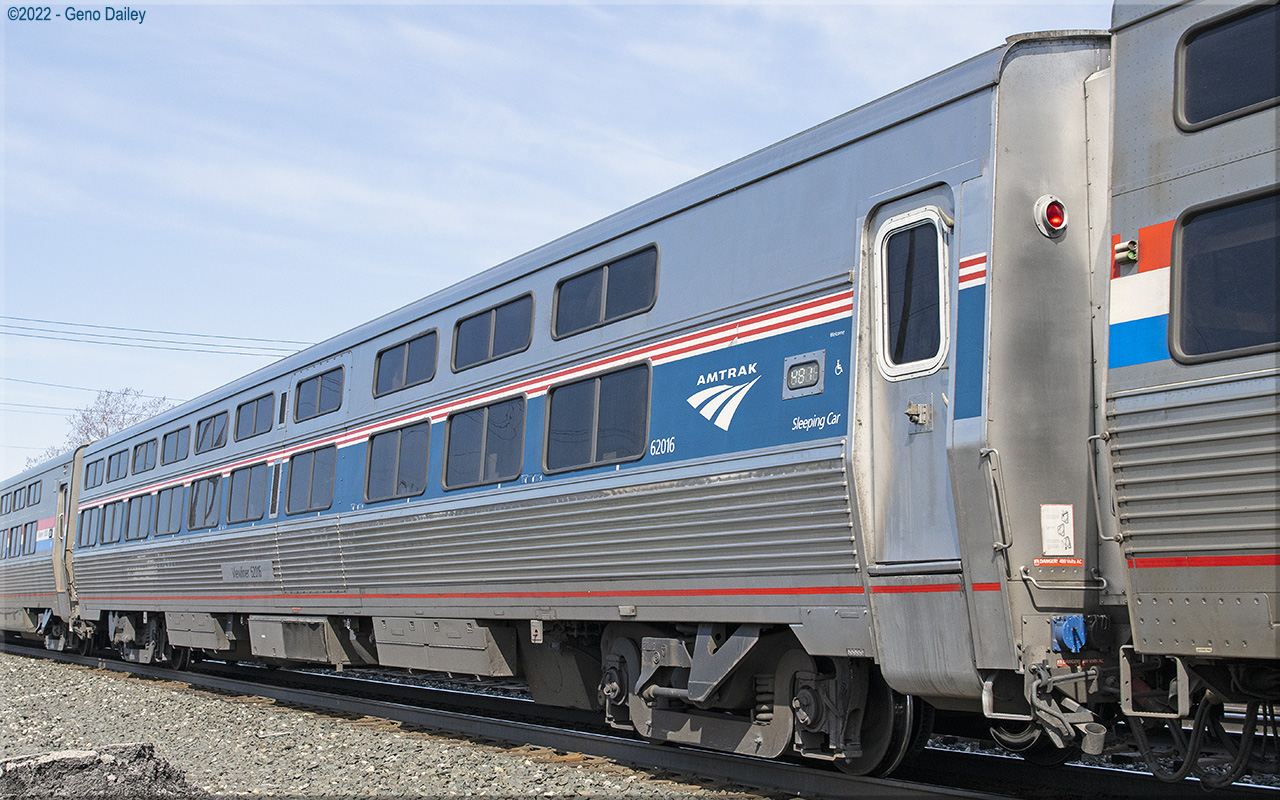 Built by Amerail in March 1996 as a single-level sleeping car originally named "Lake View" and numbered 62016. Historical information about this car provided by www.amtrakbythenumbers.com. |