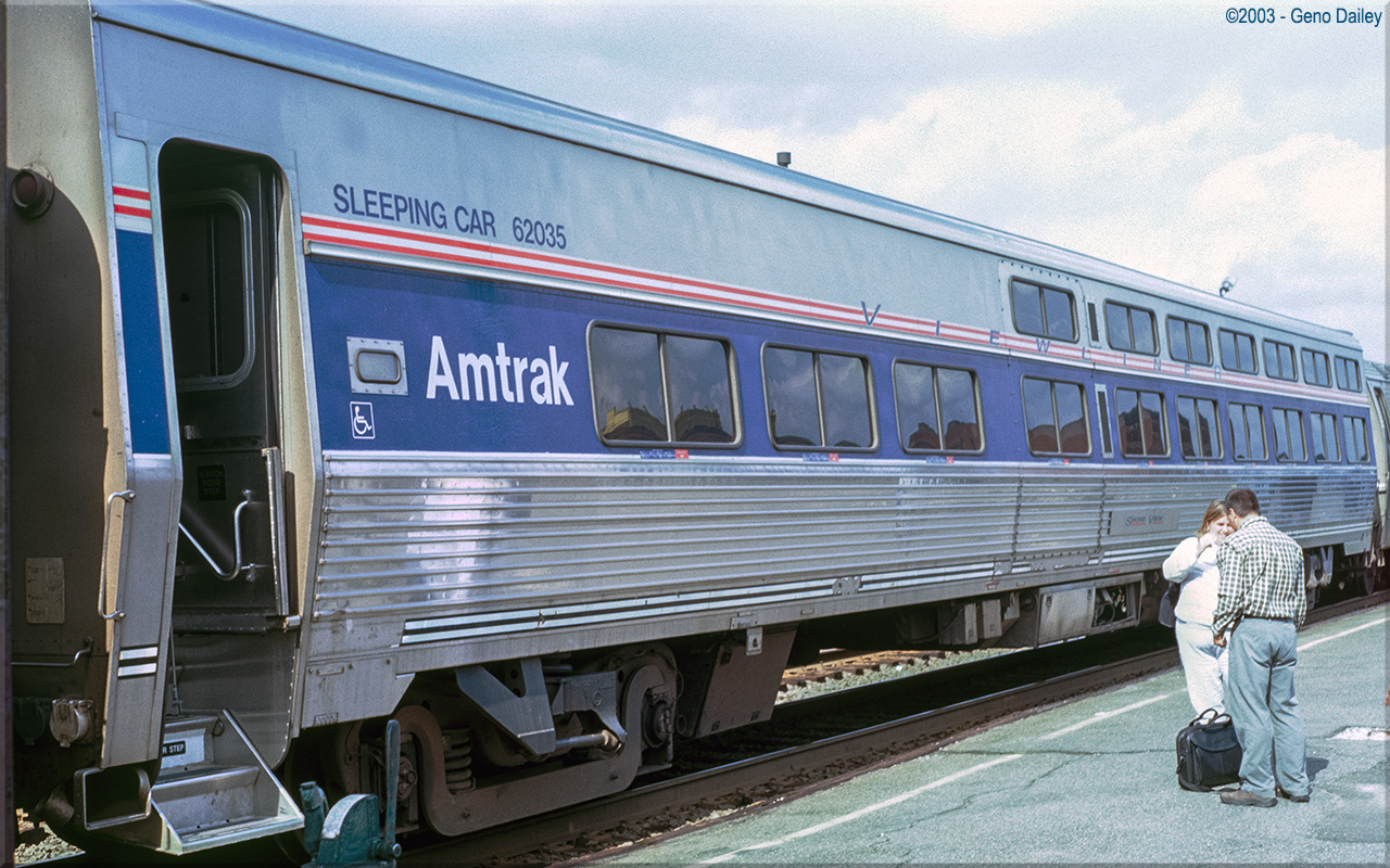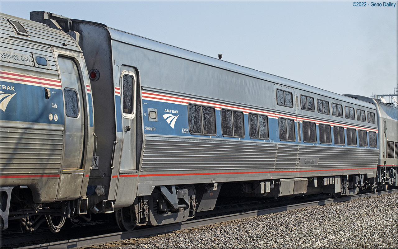 Built by Amerail in September 1996 as a single-level sleeping car originally named "Shore View" and numbered 62035. Historical information about this car provided by www.amtrakbythenumbers.com.