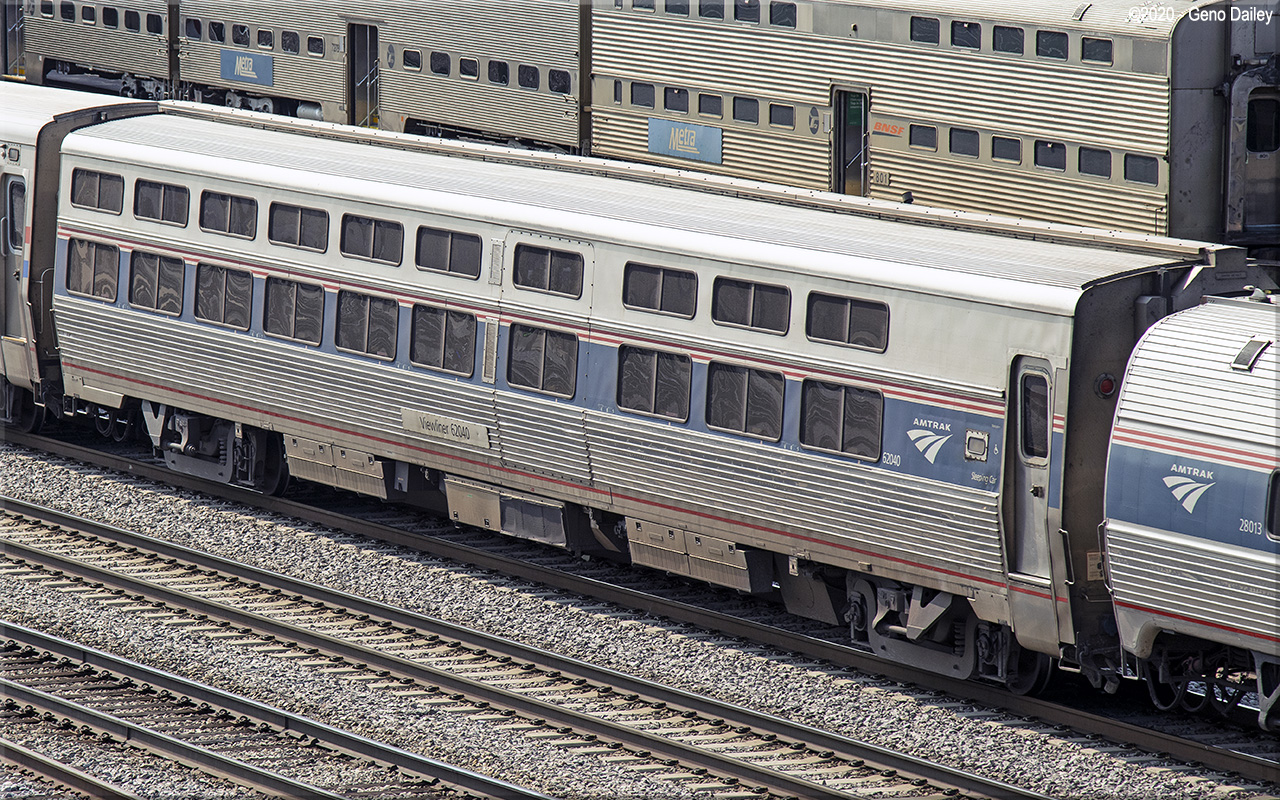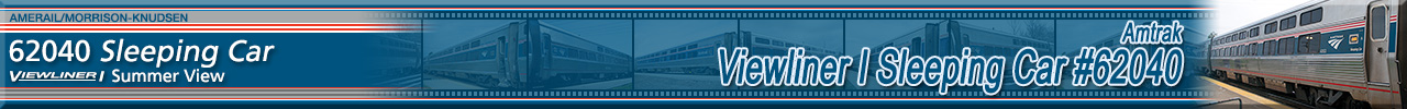 Built by Amerail in October 1996 as a single-level sleeping car originally named "Summer View" and numbered 62040. As seen in the above photo, in Phase VI paint, there is no name on the car any longer, being replaced simply with the word "Viewliner" and its car number. Historical information about this car provided by www.amtrakbythenumbers.com. |