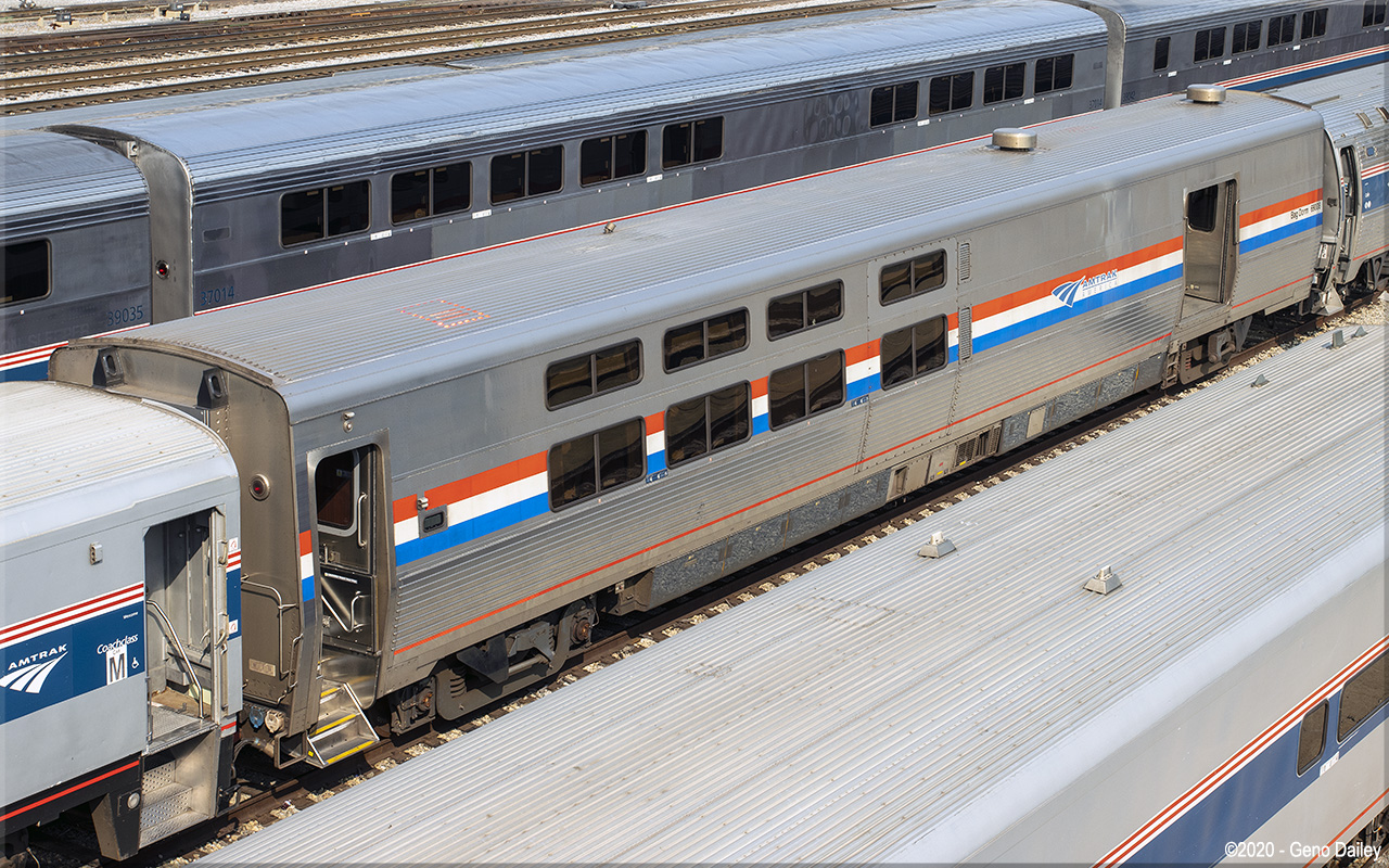 de Ferrocarrilesas) in Elmira Heights, NY in August 2019 and numbered 69008. These cars were built to carry baggage on one end and have roomettes for use by the crew on the other and were all delivered in Amtrak's classic Phase III paint scheme while sporting the current Amtrak "Travelmark" Logo. Historical information about this car provided by www.amtrakbythenumbers.com. |