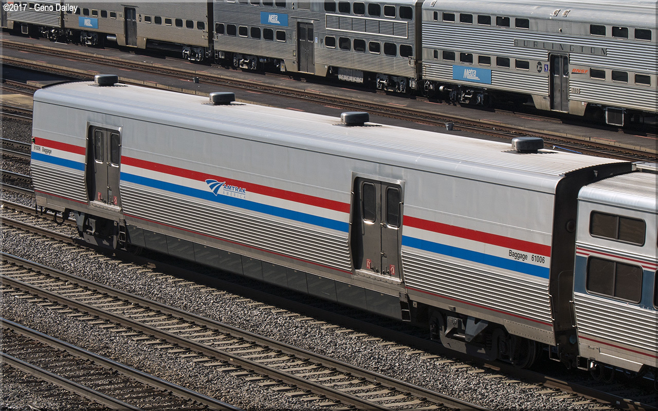 de Ferrocarrilesas) in Elmira Heights, NY in 2013 and numbered 61006. These cars were built to replace Heritage Baggage cars used systemwide and were all delivered in Amtrak's classic Phase III paint scheme while sporting the current Amtrak "Travelmark" Logo. Historical information about this car provided by www.amtrakbythenumbers.com. |