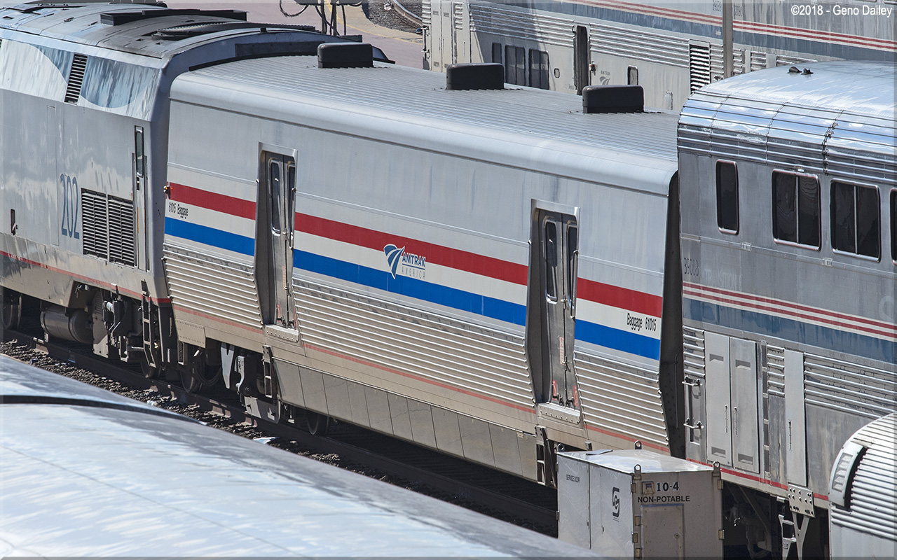 de Ferrocarrilesas) in Elmira Heights, NY in 2014 and numbered 61015. These cars were built to replace Heritage Baggage cars used systemwide and were all delivered in Amtrak's classic Phase III paint scheme while sporting the current Amtrak "Travelmark" Logo. Historical information about this car provided by www.amtrakbythenumbers.com. |