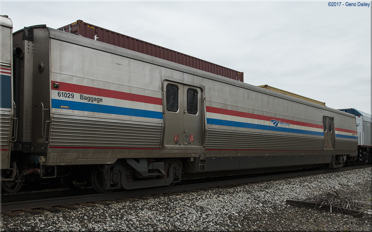 de Ferrocarrilesas) in Elmira Heights, NY in 2014 and numbered 61029. These cars were built to replace Heritage Baggage cars used systemwide and were all delivered in Amtrak's classic Phase III paint scheme while sporting the current Amtrak "Travelmark" Logo. Historical information about this car provided by www.amtrakbythenumbers.com. |