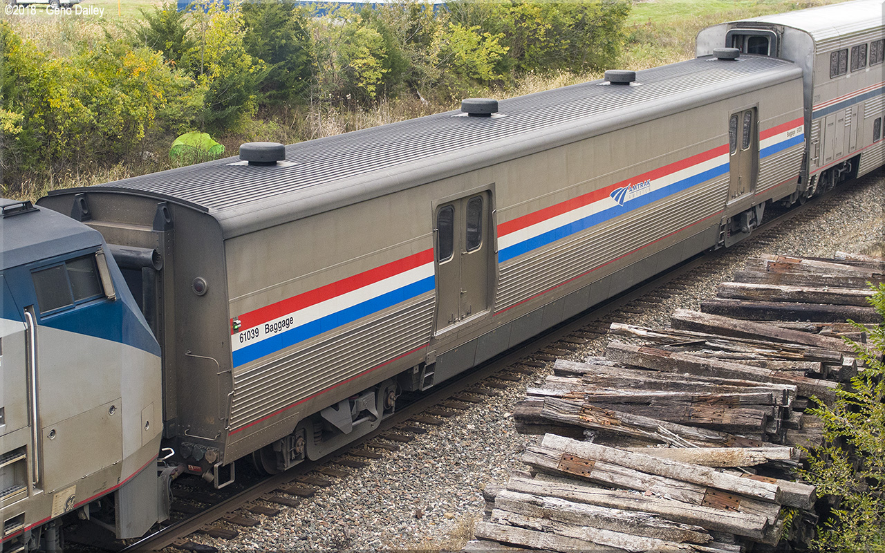 de Ferrocarrilesas) in Elmira Heights, NY in 2014 and numbered 61039. These cars were built to replace Heritage Baggage cars used systemwide and were all delivered in Amtrak's classic Phase III paint scheme while sporting the current Amtrak "Travelmark" Logo. Historical information about this car provided by www.amtrakbythenumbers.com. |