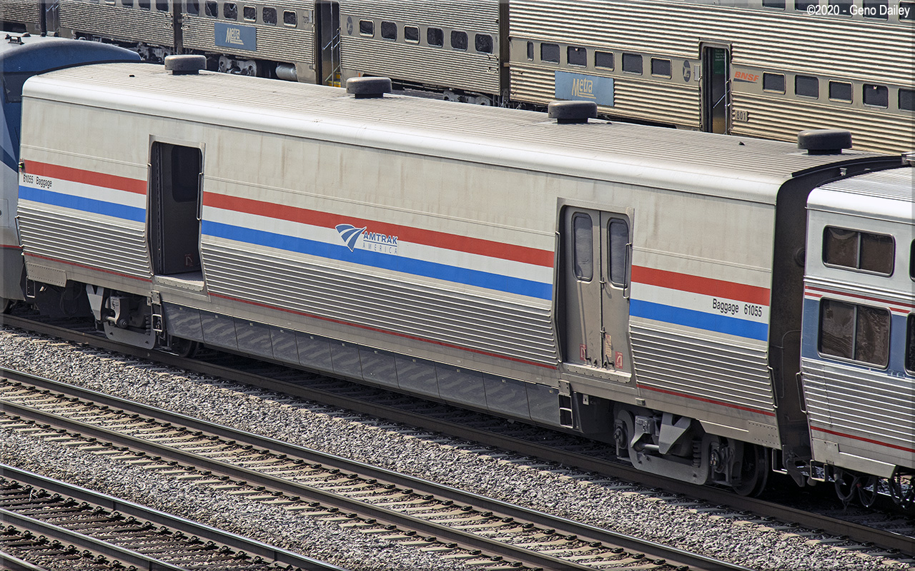 de Ferrocarrilesas) in Elmira Heights, NY in 2014 and numbered 61055. These cars were built to replace Heritage Baggage cars used systemwide and were all delivered in Amtrak's classic Phase III paint scheme while sporting the current Amtrak "Travelmark" Logo. Historical information about this car provided by www.amtrakbythenumbers.com. |