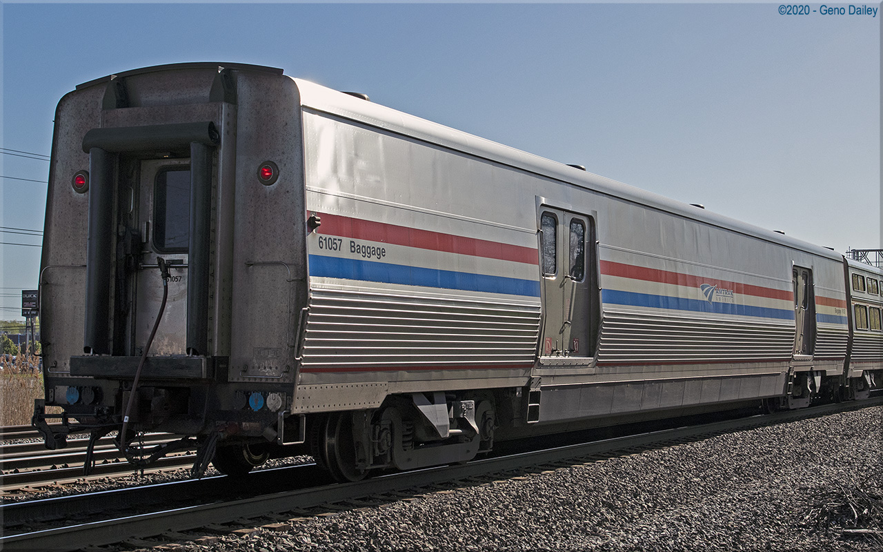 de Ferrocarrilesas) in Elmira Heights, NY in 2014 and numbered 61057. These cars were built to replace Heritage Baggage cars used systemwide and were all delivered in Amtrak's classic Phase III paint scheme while sporting the current Amtrak "Travelmark" Logo. Historical information about this car provided by www.amtrakbythenumbers.com. |
